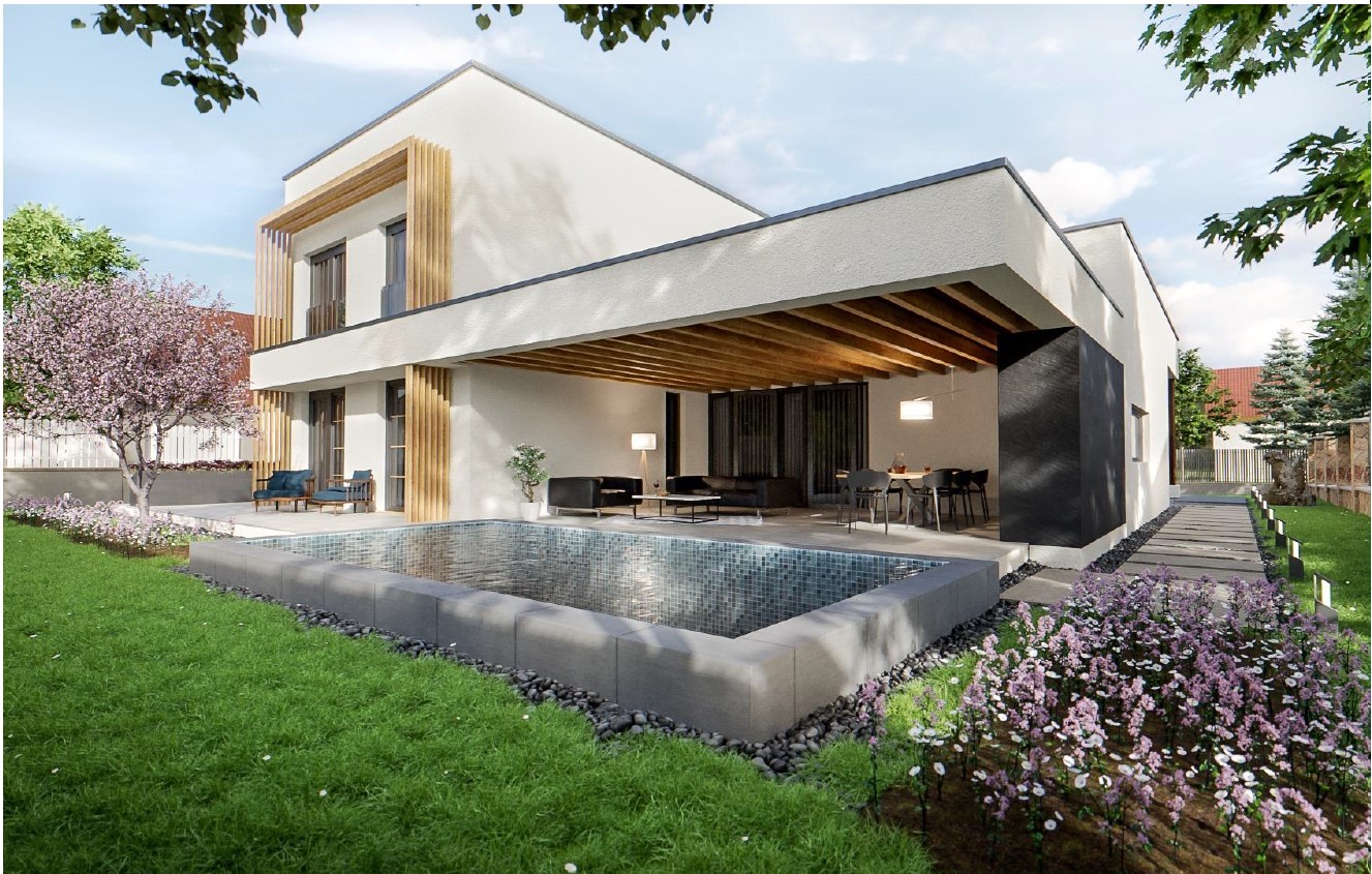 Cégünk kivitelezésében valósult meg Diósdon egy modern, prémium kategóriás családi ház megépítése, mintegy 250 m² hasznos alapterületen. A projekt során kiemelt hangsúlyt kapott az igényes építészeti megjelenés és a magas szintű lakókomfort. A tágas, egyterű nappali–konyha–étkező közvetlen kertkapcsolattal rendelkezik, míg az épület minden pontján korszerű, felületfűtés–hűtés rendszer biztosítja az optimális hőérzetet, kiegyenlített, hővisszanyerős szellőztetéssel kiegészítve. A lakók kényelmét tovább növeli a pihenést szolgáló, gondosan kialakított kerti wellness rész, valamint a nagyméretű fedett terasz, amelyhez teljes értékű nyári konyha kapcsolódik. Az elkészült épület a modern technológiai megoldásokat, a prémium kivitelezési minőséget és az exkluzív lakókörnyezetet ötvözi, valódi, magas színvonalú otthont teremtve.